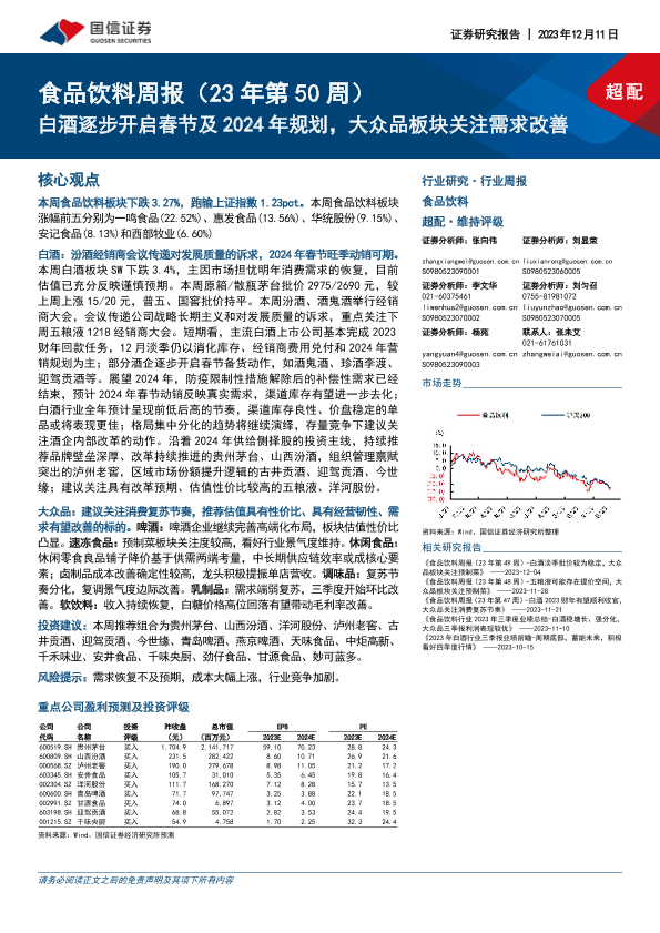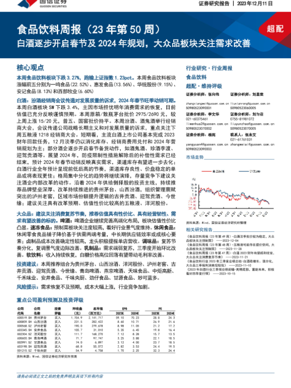 【国信证券】【20231211】20231211-国信证券-食品饮料周报(23年第50周):白酒逐步开启春节及2024年规划,大众品板块关注需求改善-20页