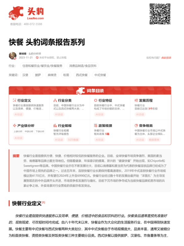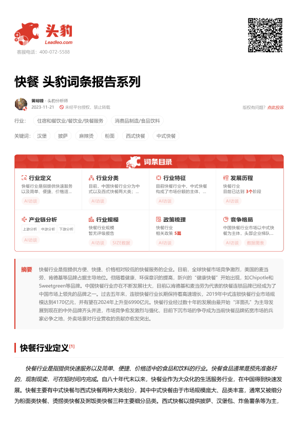 【头豹研究院】【20231218】快餐 头豹词条报告系列-16页