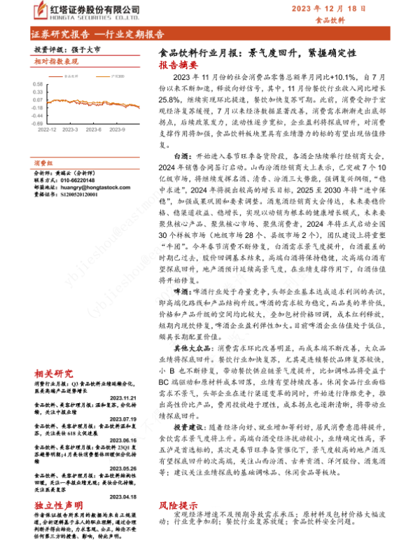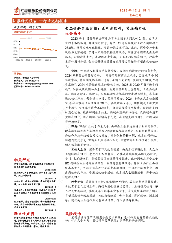 【红塔证券】【20231218】食品饮料行业月报:景气度回升,紧握确定性-13页