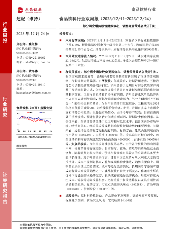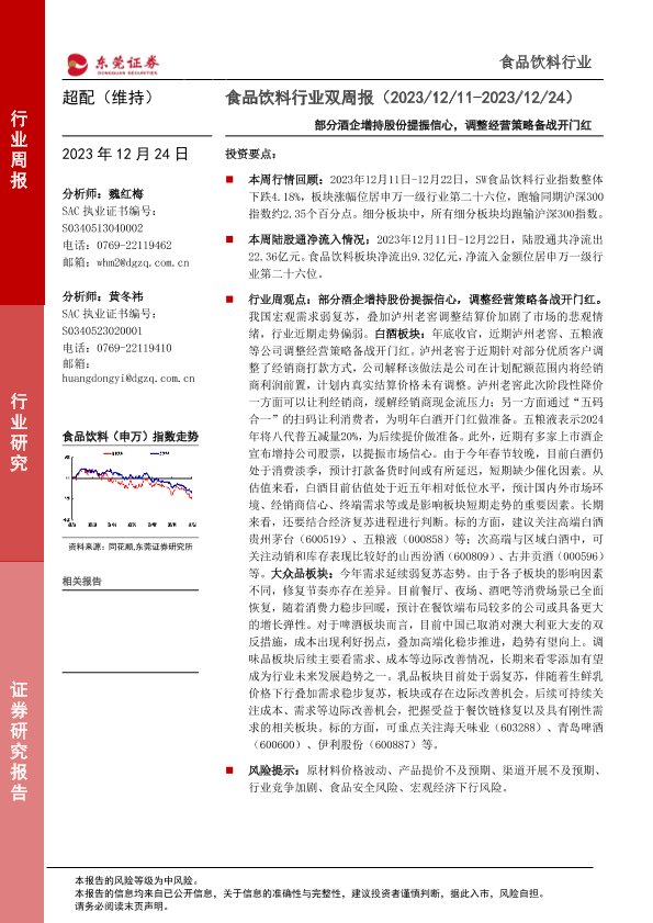 【东莞证券】【20231224】食品饮料行业双周报:部分酒企增持股份提振信心,调整经营策略备战开门红-14页