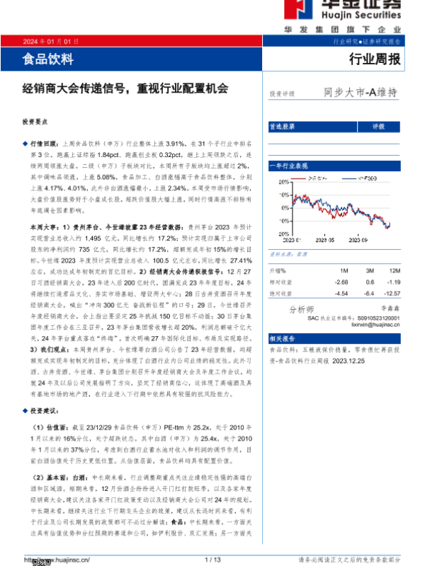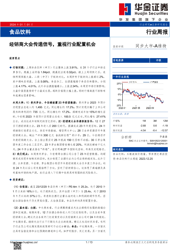 【华金证券】【20240101】食品饮料行业周报:经销商大会传递信号,重视行业配置机会-13页