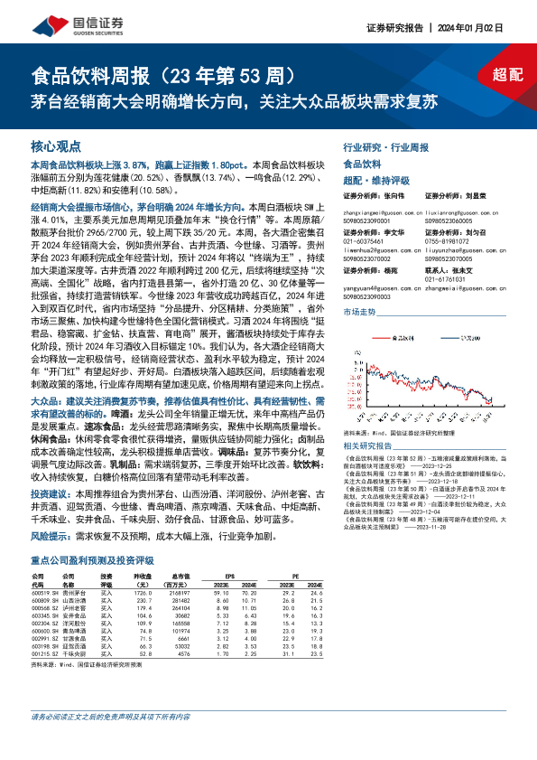 【国信证券】【20240102】20240102-国信证券-食品饮料周报(23年第53周):茅台经销商大会明确增长方向,关注大众品板块需求复苏-20页
