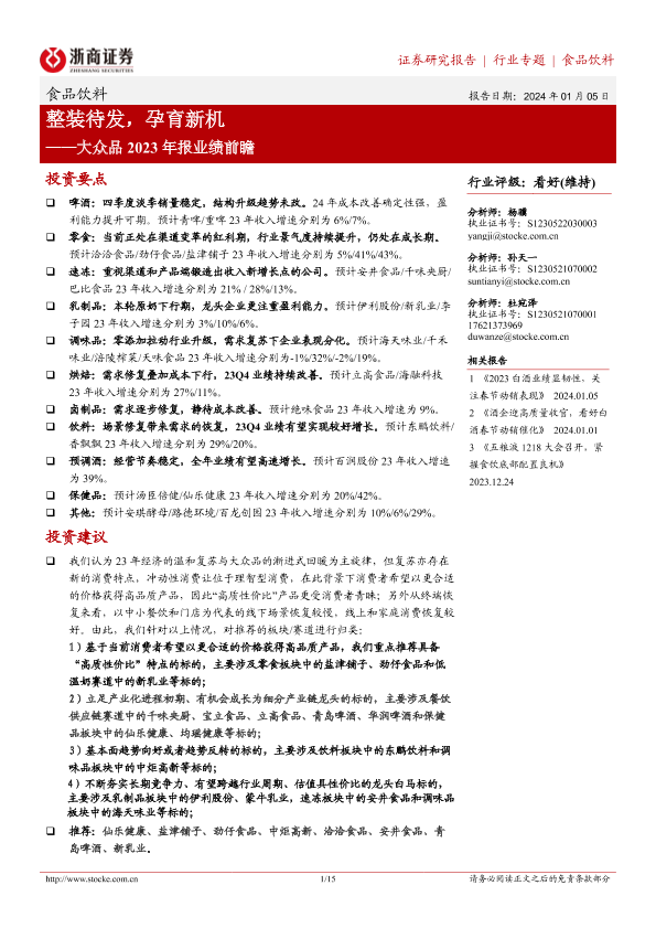 【浙商证券】【20240105】食品饮料:大众品2023年报业绩前瞻-整装待发,孕育新机-15页
