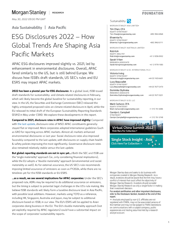 【Morgan Stanley】【20220530】2022年ESG信息披露:全球趋势如何塑造亚太市场-25页