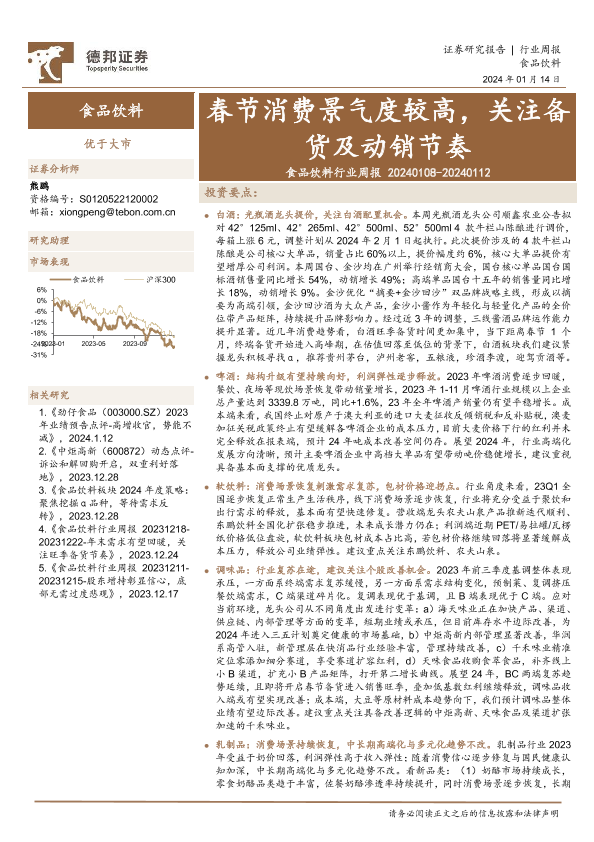 【德邦证券】【20240114】20240114-德邦证券-食品饮料行业周报:春节消费景气度较高,关注备货及动销节奏-16页