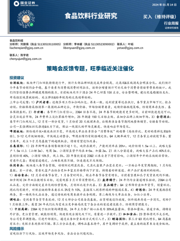 【国金证券】【20240114】20240114-国金证券-食品饮料行业研究:策略会反馈专题,旺季临近关注催化-12页