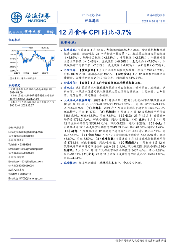 【海通证券】【20240115】20240115-海通证券-食品行业周报:12月食品CPI同比-3.7%-17页