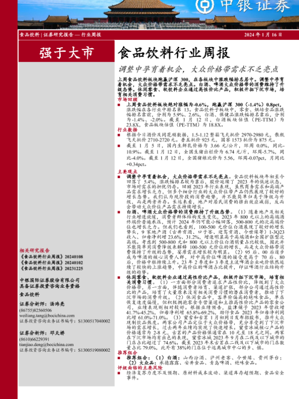 【中银证券】【20240116】20240116-中银证券-食品饮料行业周报:调整中孕育着机会,大众价格带需求不乏亮点-16页