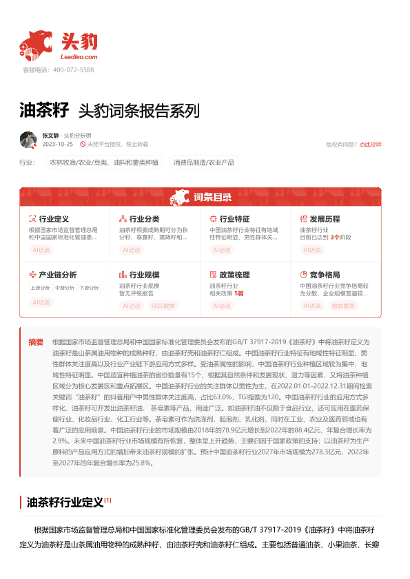 【头豹研究院】【20240117】20240117-头豹研究院-油茶籽 头豹词条报告系列-16页