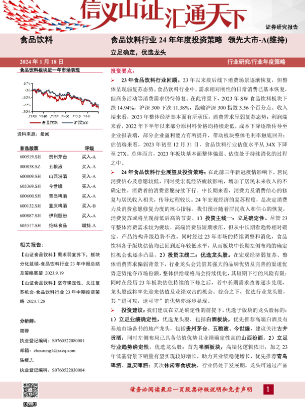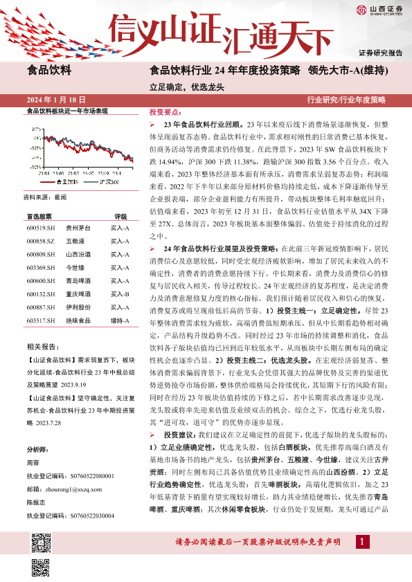 【山西证券】【20240118】食品饮料行业24年年度投资策略:立足确定,优选龙头-39页