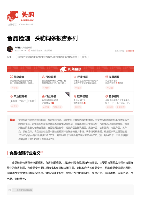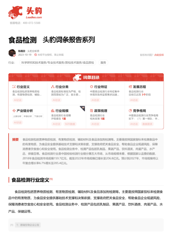 【头豹研究院】【20240122】食品检测 头豹词条报告系列-19页