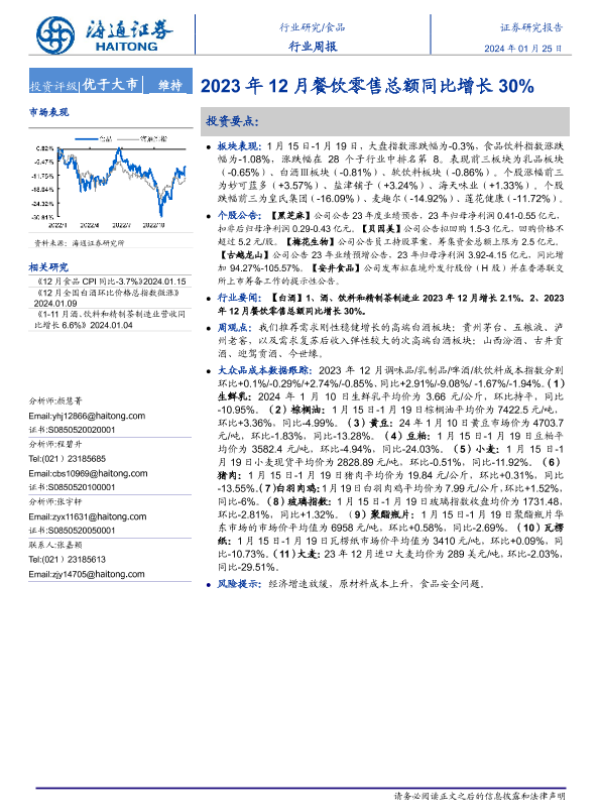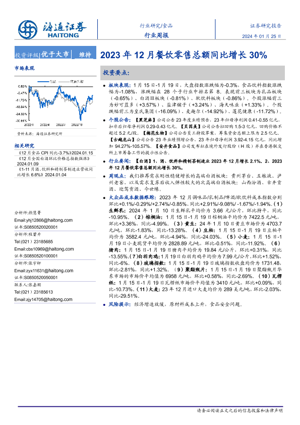 【海通证券】【20240125】20240125-海通证券-食品行业周报:2023年12月餐饮零售总额同比增长30%-17页