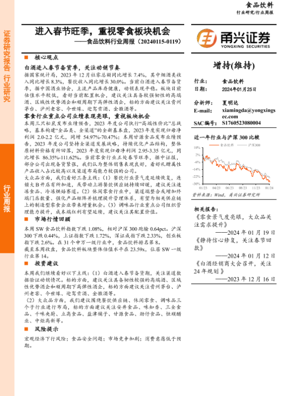 【甬兴证券】【20240125】20240125-甬兴证券-食品饮料行业周报:进入春节旺季,重视零食板块机会-15页