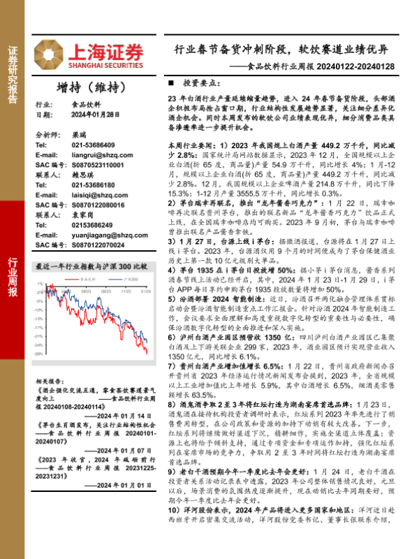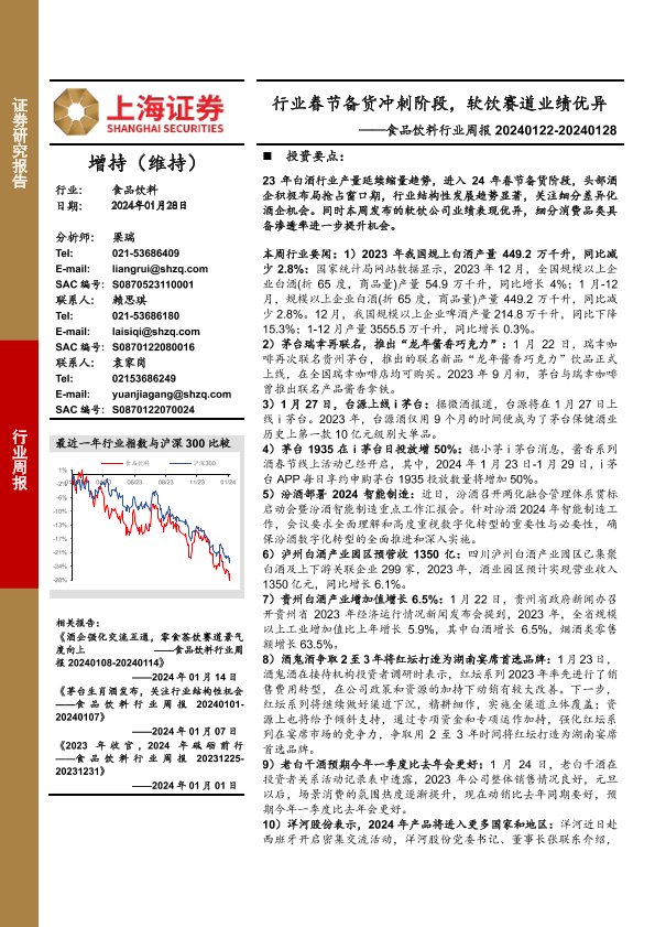 【上海证券】【20240128】行业春节备货冲刺阶段,软饮赛道业绩优异——食品饮料行业周报 20240122-20240128-23页