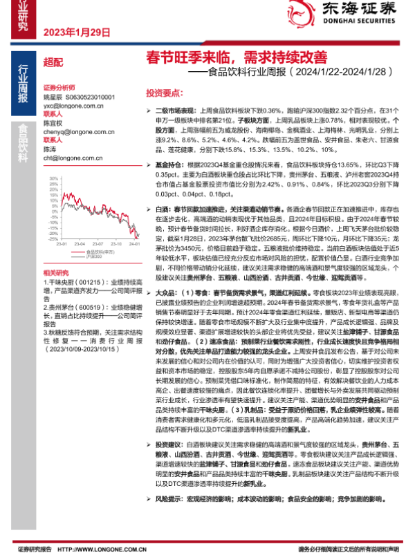 【东海证券】【20240129】20240129-东海证券-食品饮料行业周报:春节旺季来临,需求持续改善-13页