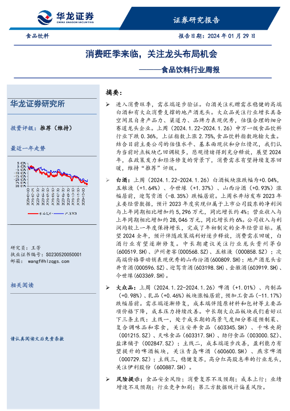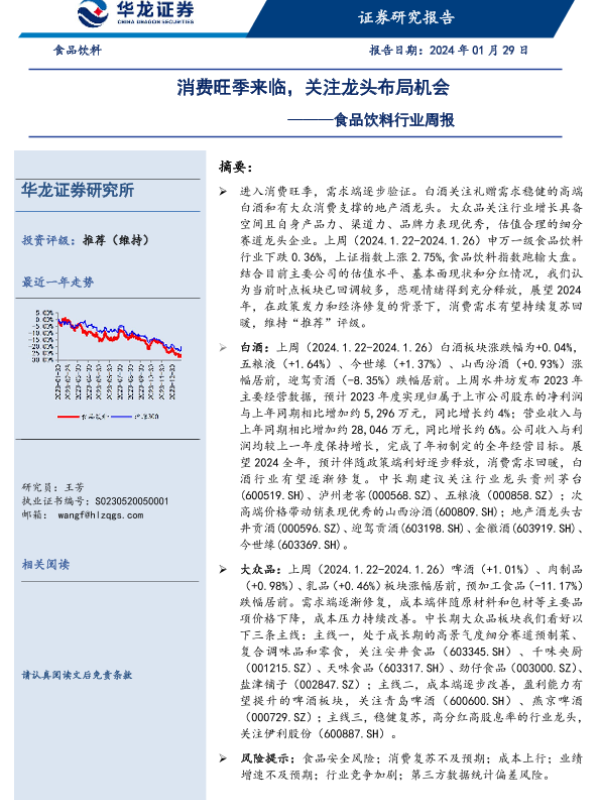 【华龙证券】【20240129】20240129-华龙证券-食品饮料行业周报:消费旺季来临,关注龙头布局机会-12页