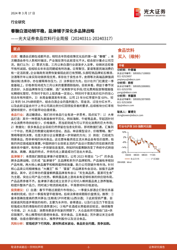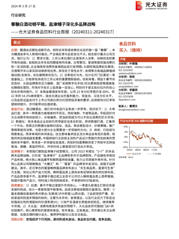 【光大证券】【20240317】20240317-光大证券-食品饮料行业周报:春糖白酒动销平稳,盐津铺子深化多品牌战略-10页