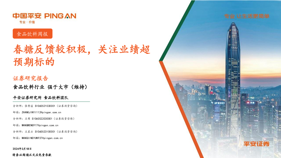 【平安证券】【20240318】20240318-平安证券-食品饮料行业周报:春糖反馈较积极,关注业绩超预期标的-15页