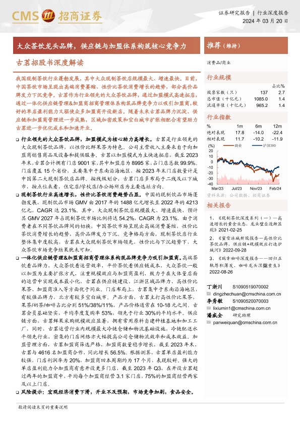 【海通证券】【20240320】20240320-招商证券-古茗招股书深度解读:大众茶饮龙头品牌,供应链与加盟体系构筑核心竞争力-29页
