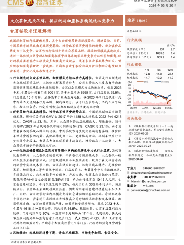 供应链管理 加盟模式 古茗 大众茶饮 茶饮行业
