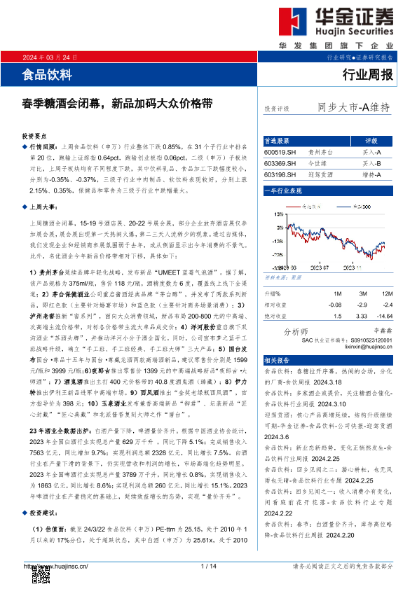 【华金证券】【20240324】食品饮料行业周报:春季糖酒会闭幕,新品加码大众价格带-14页