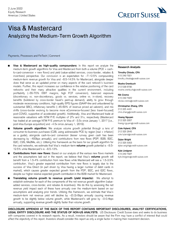 【瑞信】【20220602】瑞信-美股投资策略-维萨和万事达卡:中期增长算法分析-88页