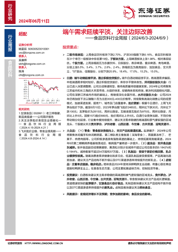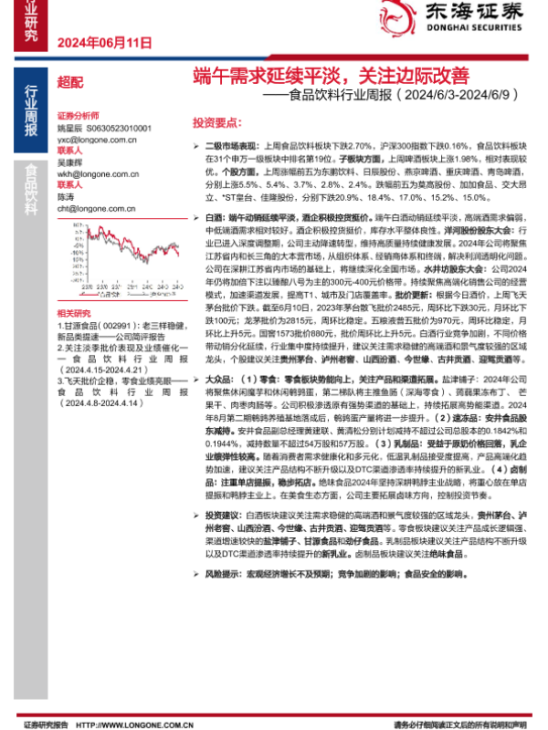 【东海证券】【20240611】20240611-东海证券-食品饮料行业周报:端午需求延续平淡,关注边际改善-10页