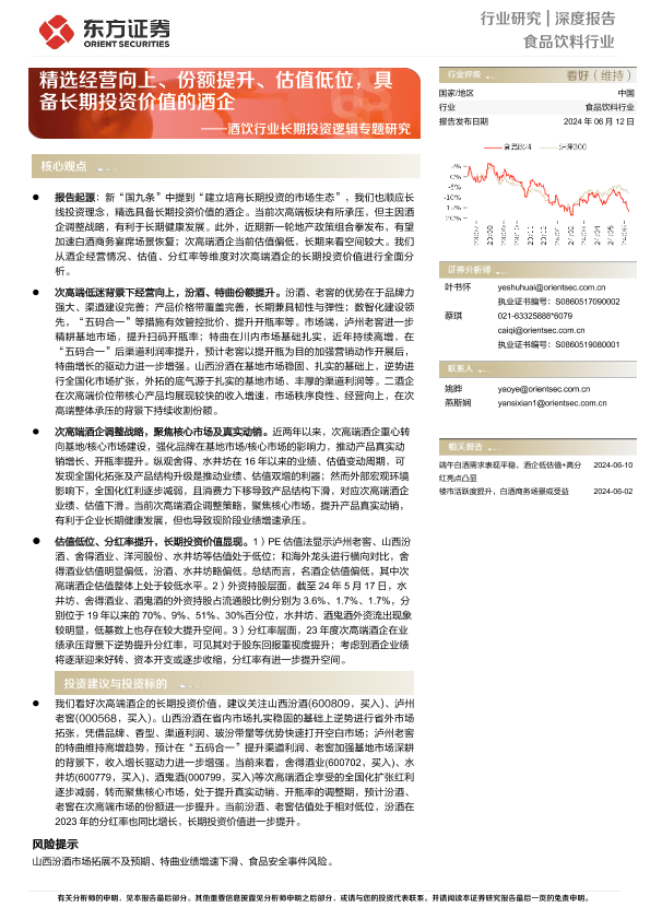【东方证券】【20240612】20240612-东方证券-酒饮行业长期投资逻辑专题研究:精选经营向上、份额提升、估值低位,具备长期投资价值的酒企-19页