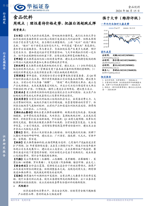 【华福证券】【20240615】食品饮料行业周观点:理性看待价格走势,把握白酒超跌反弹-14页