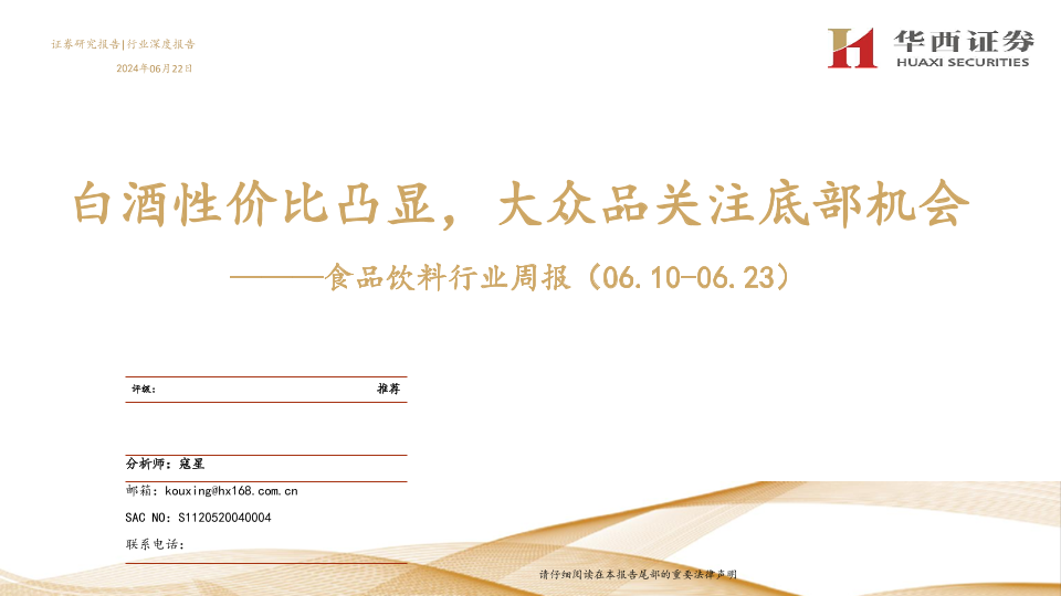 【华西证券】【20240622】20240622-华西证券-食品饮料行业周报:白酒性价比凸显,大众品关注底部机会-22页