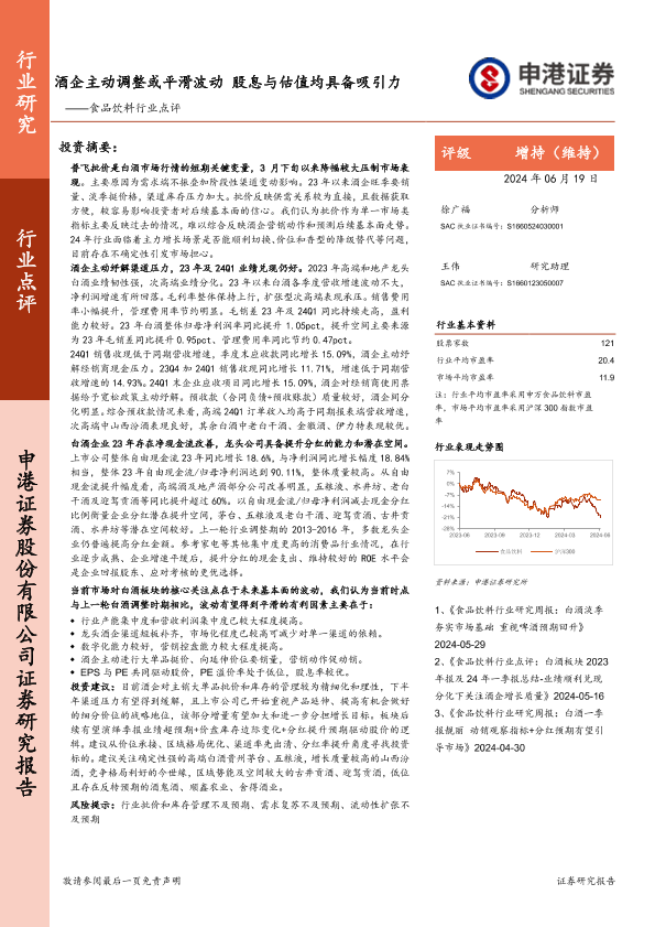 【申港证券】【20240619】20240619-申港证券-食品饮料行业点评:酒企主动调整或平滑波动 股息与估值均具备吸引力-29页