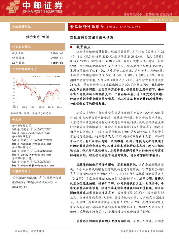 【中邮证券】【20240623】20240623-中邮证券-食品饮料行业报告:理性看待当前诸多悲观预期-18页