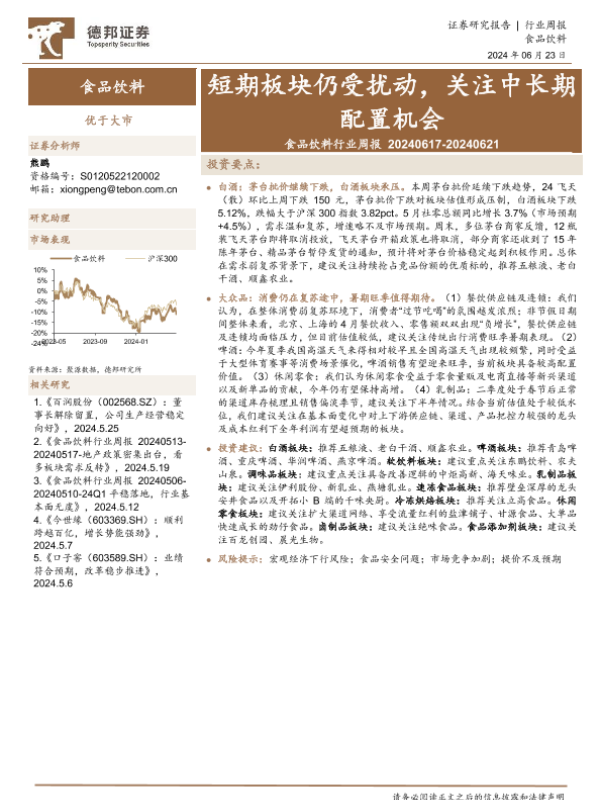 【德邦证券】【20240623】20240623-德邦证券-食品饮料行业周报:短期板块仍受扰动,关注中长期配置机会-17页