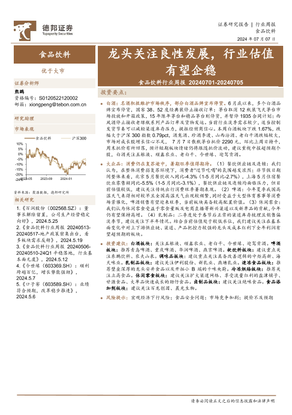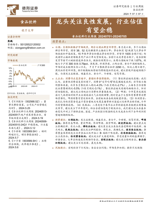 【德邦证券】【20240707】20240707-德邦证券-食品饮料行业周报:龙头关注良性发展,行业估值有望企稳-16页
