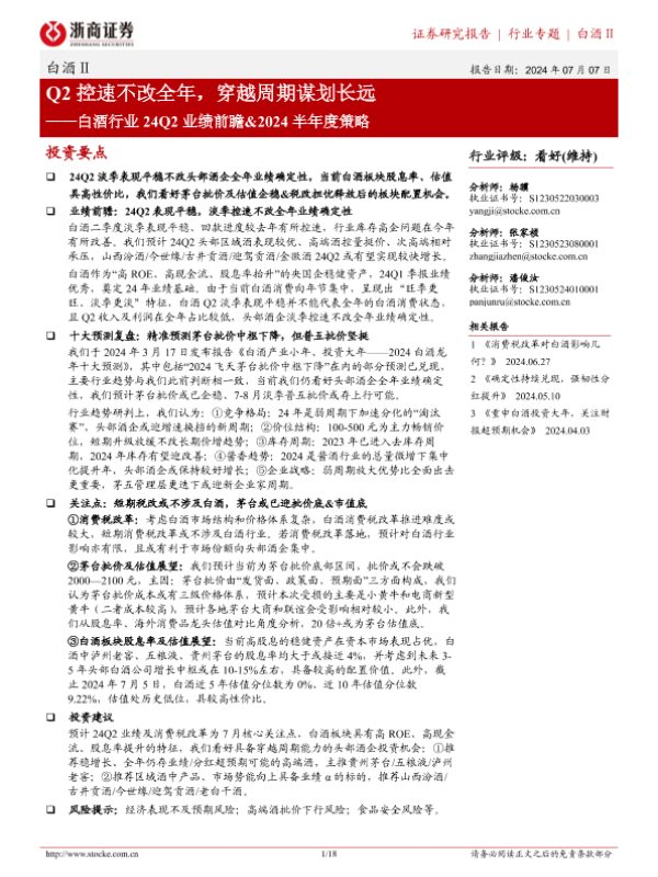 【浙商证券】【20240707】Q2控速不改全年,穿越周期谋划长远——白酒行业24Q2业绩前瞻&2024半年度策略-18页