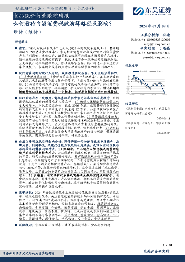 【东吴证券】【20240709】20240709-东吴证券-食品饮料行业跟踪周报:如何看待白酒消费税改演绎路径及影响?-20页