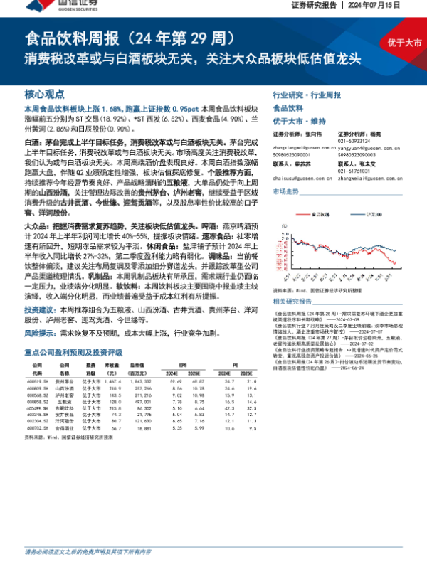 【国信证券】【20240715】20240715-国信证券-食品饮料周报(24年第29周):消费税改革或与白酒板块无关,关注大众品板块低估值龙头-21页