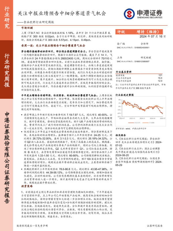 【申港证券】【20240716】20240716-申港证券-食品饮料行业研究周报:关注中报业绩预告中细分赛道景气机会-12页