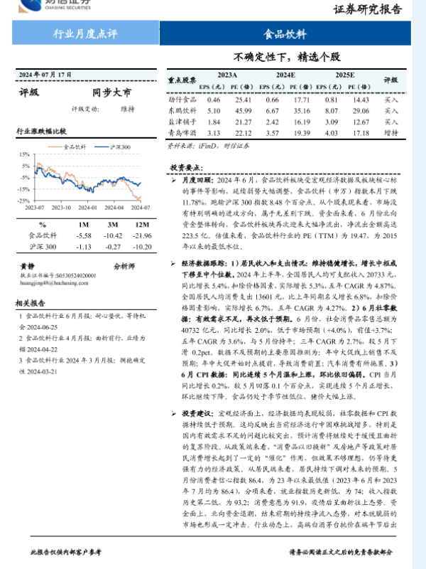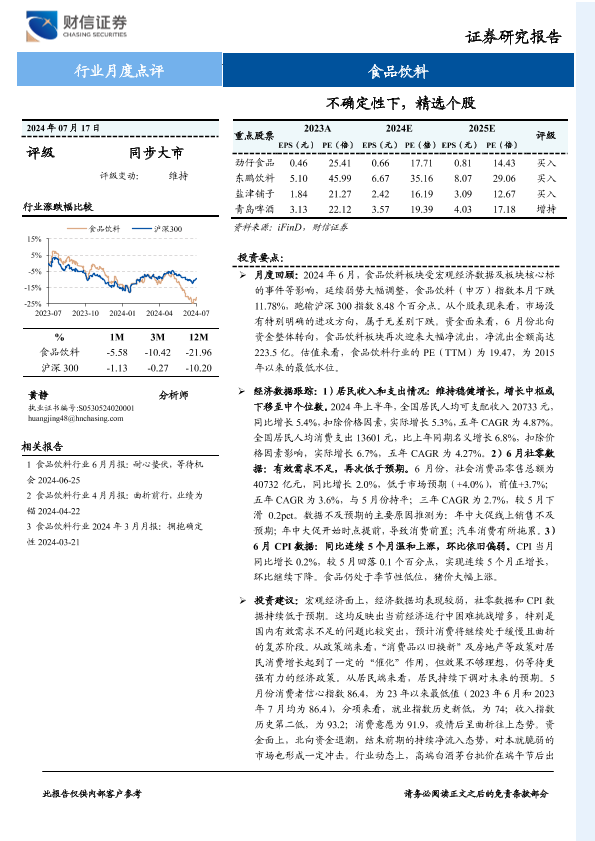 【财信证券】【20240717】20240717-财信证券-食品饮料行业月度点评:不确定性下,精选个股-20页