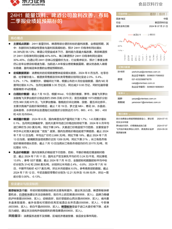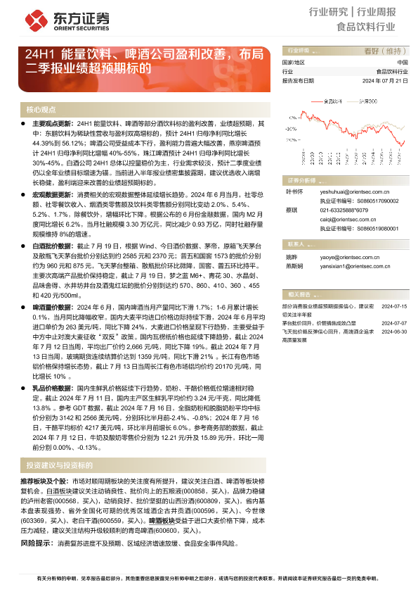 【东方证券】【20240721】24H1能量饮料、啤酒公司盈利改善,布局二季报业绩超预期标的-11页