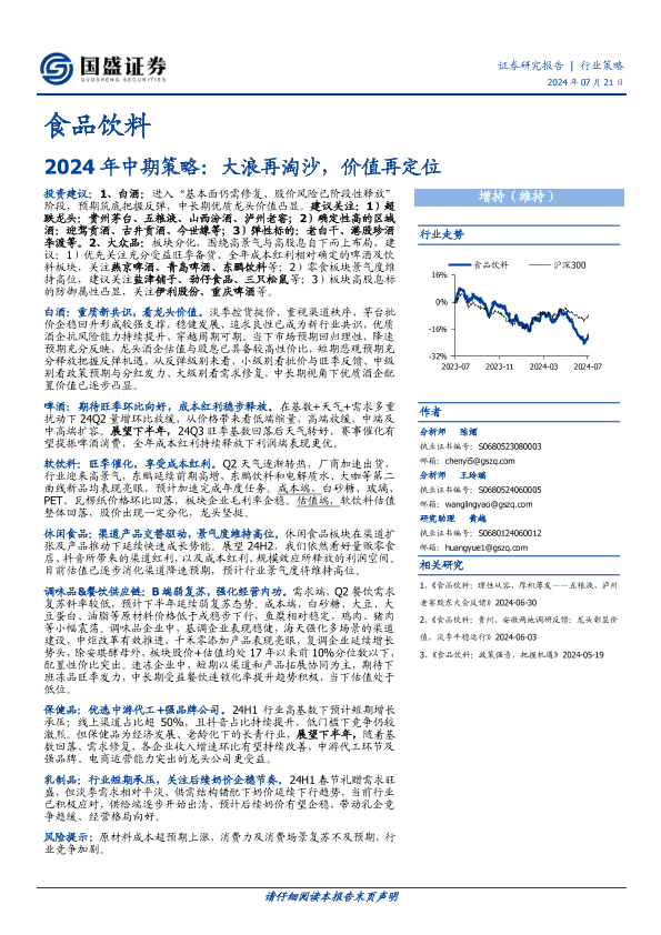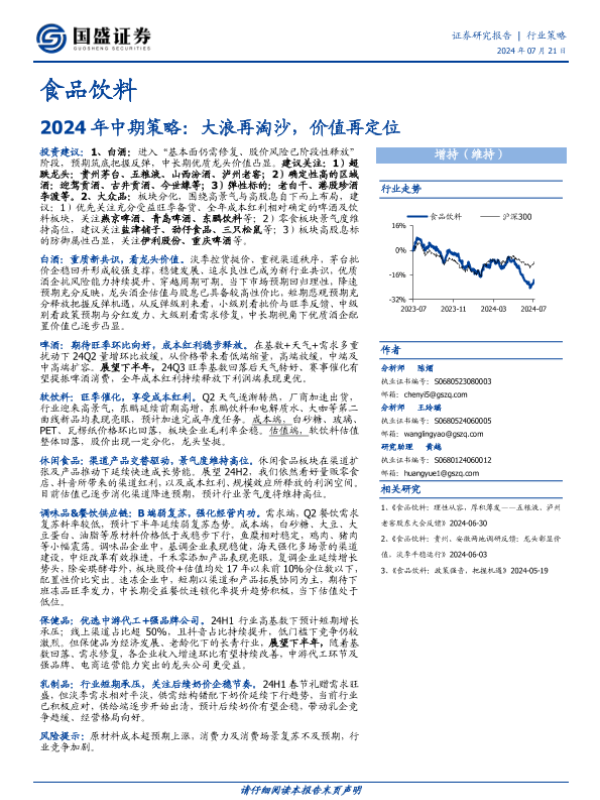 【国盛证券】【20240721】食品饮料2024年中期策略:大浪再淘沙,价值再定位-25页