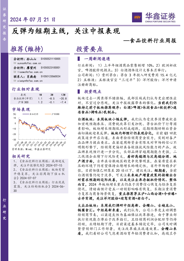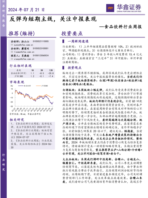 【华鑫证券】【20240721】20240721-华鑫证券-食品饮料行业周报:反弹为短期主线,关注中报表现-22页
