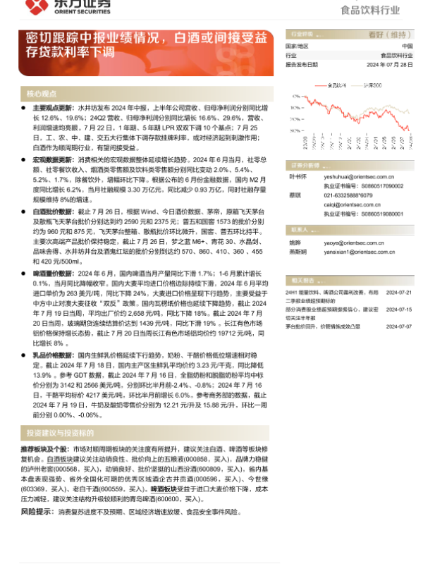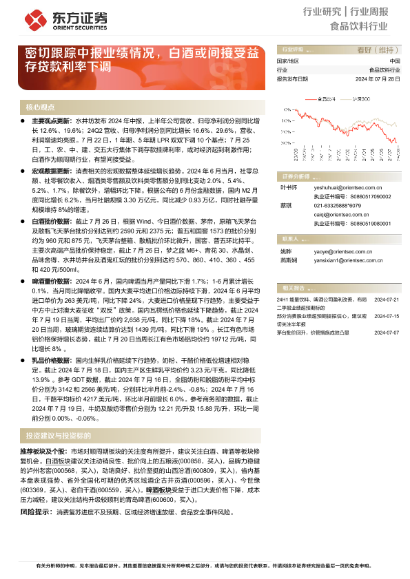 【东方证券】【20240728】食品饮料行业周报:密切跟踪中报业绩情况,白酒或间接受益存贷款利率下调-11页