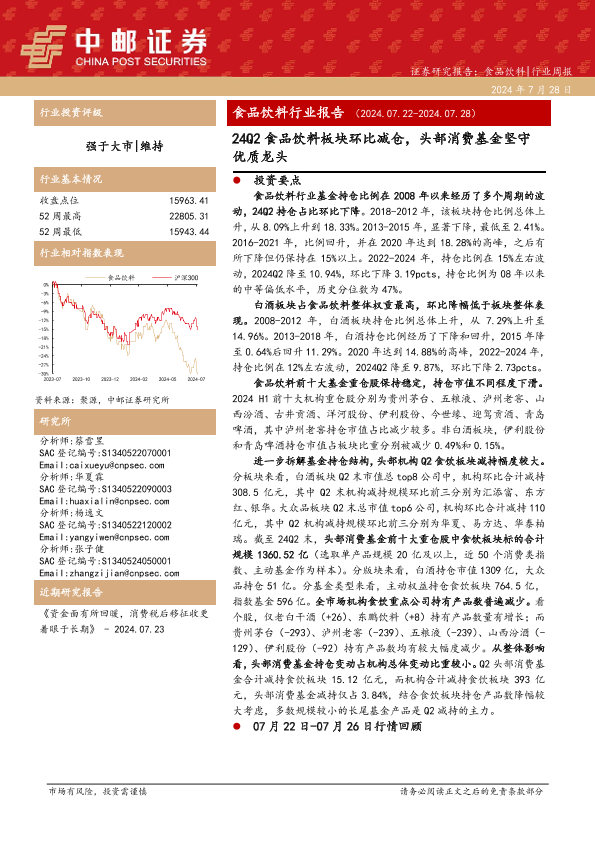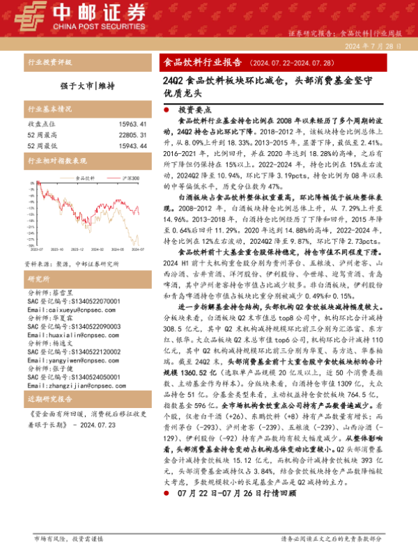 【中邮证券】【20240728】24Q2食品饮料板块环比减仓,头部消费基金坚守优质龙头-22页