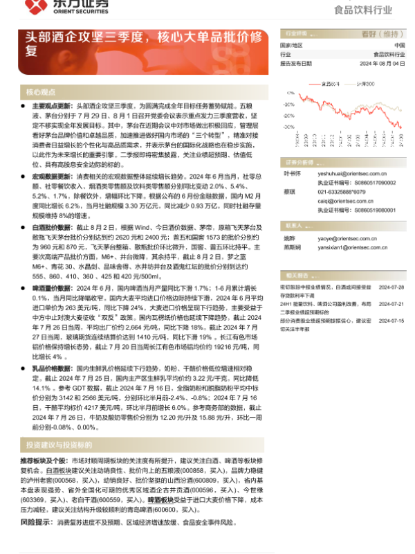 【东方证券】【20240804】20240804-东方证券-食品饮料行业周报:头部酒企攻坚三季度,核心大单品批价修复-11页