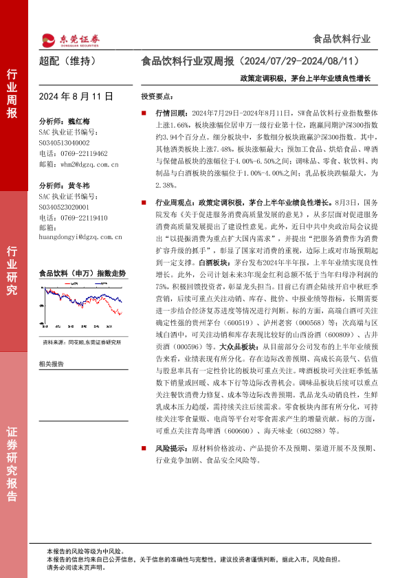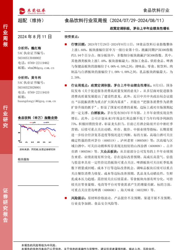 【东莞证券】【20240811】食品饮料行业双周报:政策定调积极,茅台上半年业绩良性增长-13页