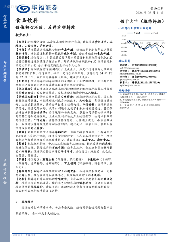 【华福证券】【20240811】20240811-华福证券-食品饮料行业定期报告:价值初心不改,反弹有望持续-14页