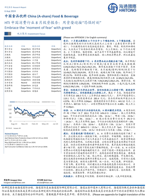 【海通国际】【202408】HTI中国消费行业8月投资报告:用贪婪迎接“恐惧时刻”-48页
