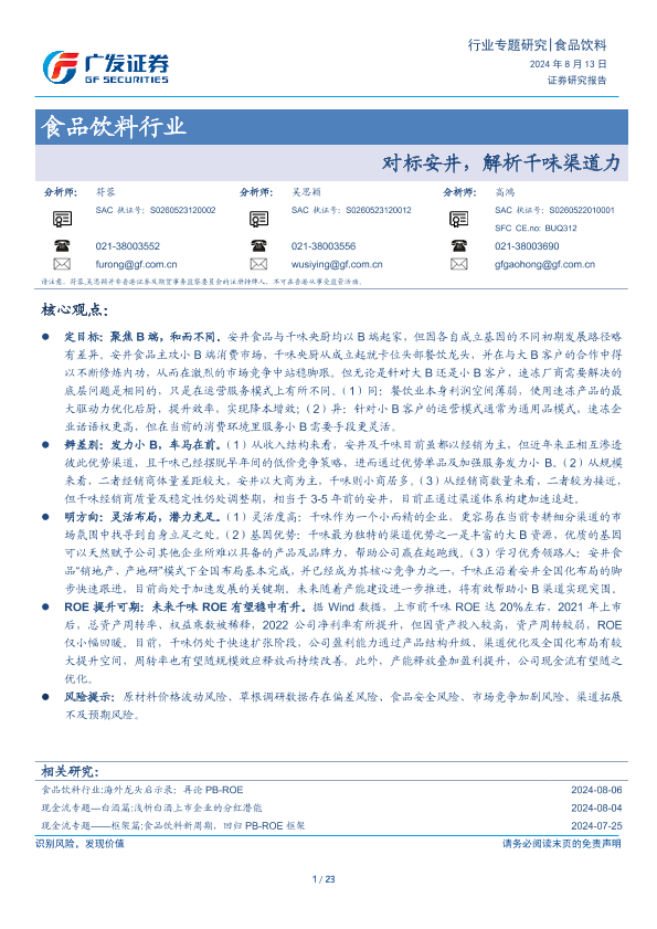 【广发证券】【20240813】食品饮料行业:对标安井,解析千味渠道力-23页