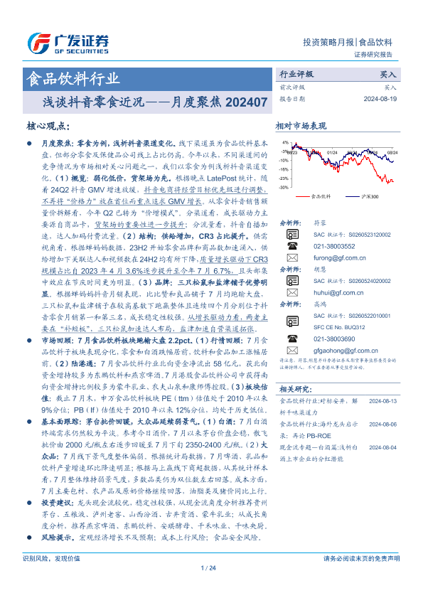 【广发证券】【20240819】20240819-广发证券-食品饮料行业投资策略月报:浅谈抖音零食近况——月度聚焦-24页